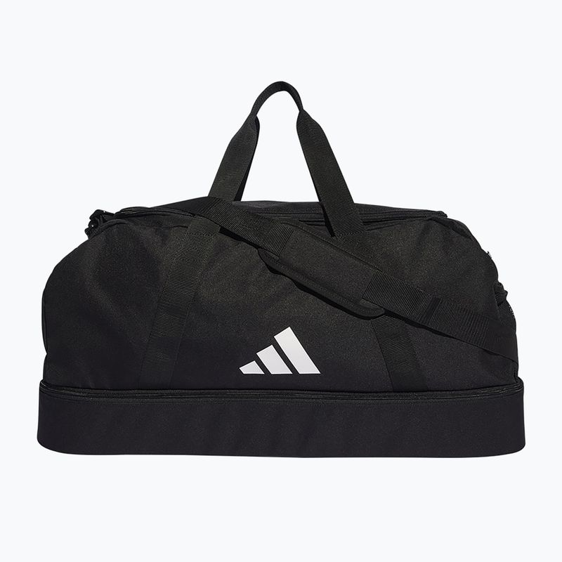 Funkcionális edzőtáska adidas Tiro League Duffel Bag fociszerelék és más felszerelések szállítására lett tervezve.