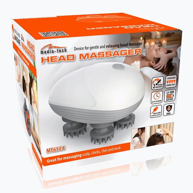 A Media-Tech MT6524 masszírozó szimulálja a professzionális ujjmasszázst, kellemes pihenést biztosítva otthoni környezetben. Ideális fejbőr, áll, áll és nyak masszírozására. 4 szilikon heggyel, két masszázssebességgel és 3 órás üzemidővel rendelkező lítium-ion akkumulátorral van felszerelve.