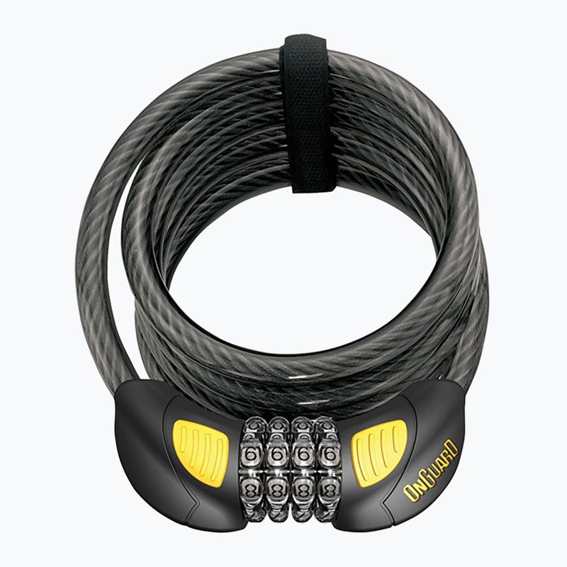 A OnGuard Doberman 8031GLO zár hisz LED világítással könnyűszerrel olvasható a kód sötétben. A vágás ellenálló acél fonott kábel vastag vinil bevonattal van ellátva. A csomagban kerékpártartó és tépőzáras heveder található a kábel rögzítésére.