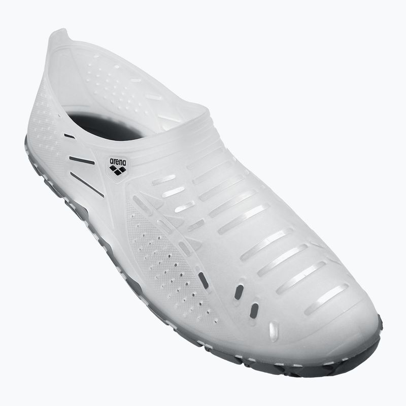 Arena Sharm clear vízicipő ideális megoldás azok számára, akik aktívan töltik az idejüket a víz mellett. Magas minőségű PVC-ből készült, amely kiváló védelmet nyújt a lábnak éles tárgyakkal és a talaj egyenetlenségeivel szemben. A slip-on dizájn lehetővé teszi a gyors fel- és levételt, ami különösen hasznos a strandon vagy a medencénél történő intenzív használat során.