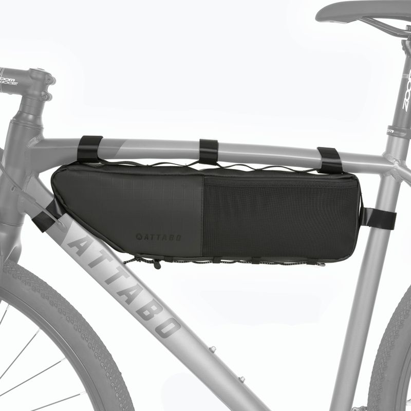 Az ATTABO Underra M 3,5 l fekete váz alatti kerékpártáska nagyobb kapacitást kínál az S modellhez képest, ami jobb felkészültséget biztosít a hosszabb utakra. A 3,5 literes használati tér lehetővé teszi, hogy ne csak javítókészletet, hanem esővédő ruházatot vagy nagyobb adag élelmet is magaddal vigyél. A táska kompakt formája nem befolyásolja negatívan a kerékpár egyensúlyát.