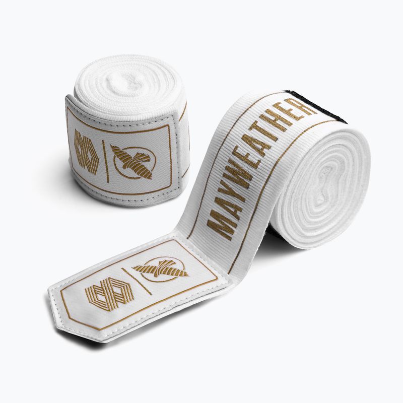 Kézbandázsok Hayabusa Mayweather Stretch Hand Wraps 450 cm white/gold (MWHW-WHGD)