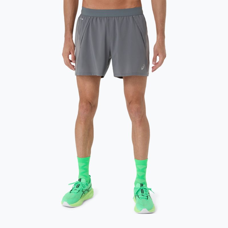 Férfi futóshort ASICS Road 5IN clay grey/steel grey/illuminate green (2011D247-020)