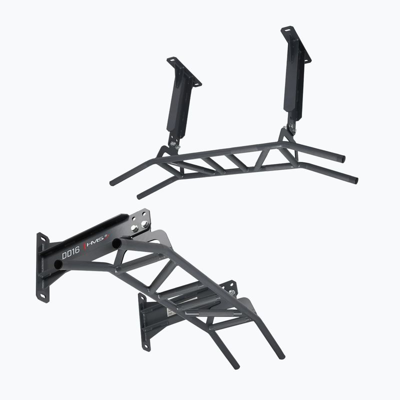 A HMS DD16 húzódzkó egy masszív berendezés otthoni edzőteremhez. A falra vagy mennyezetre történő rögzítés megkönnyíti a térhez való igazítást. A acél szerkezet, a csúszásmentes fogantyúk és a 180 kg-os teherbírás garantálja a felsőtest biztonságos edzését.
