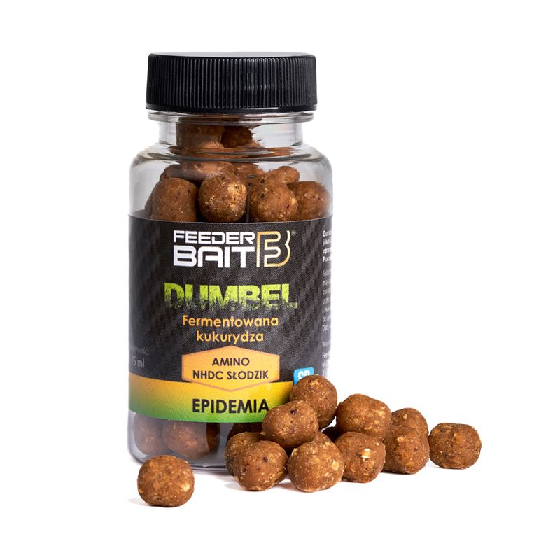 Úszó csalik nagyon intenzív aromával, amely vízzel érintkezve szabadul fel, és körülötte csíkot képez. Ez a hatás rendkívül nagy befolyással van a halak vonzására. A dumbel FB gyártásának lényege nemcsak a színnel, hanem az összetevőkkel is csalogatni a halakat. A Feeder Bait SR technológia - slow release lassú felszabadulást jelent a dumbelben található aminosavak és az NHDC édesítőszer esetében. Hosszú és fáradságos folyamat volt egy ilyen kombináció elérése, de megérte, mert a tesztek során a Dumbel Feeder Bait bizonyította felsőbbrendűségét más csalikhoz képest. Ha alaposan megnézzük a dumbelt, könnyen észrevehetjük, hogy gazdag keverékből készült, amely garantálja a hatékonyságot. A csomag hermetikusan zárt, ami frissességet garantál!!!
