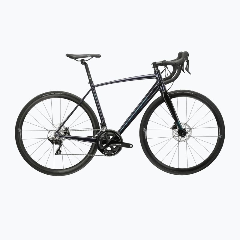 A KROSS Vento 5.0 kék/kameleon/fényes versenykerékpár ideális választás a hosszú távú kerékpározás kedvelőinek. Az alumínium váznak köszönhetően a kerékpár könnyű, ami jobb irányítást és élvezetet biztosít a vezetés során. A teljesítményszálas villa tovább csökkenti a rezgéseket, növelve a kényelmet egyenetlen utakon.