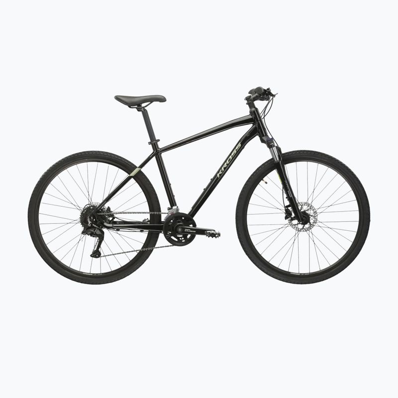 A KROSS Evado 5.0 fekete/zöld/fényes cross kerékpárt a felhasználói kényelem jegyében tervezték. Az alumíniumból készült kormány és nyeregcső könnyű és tartós. Az állítható kormány lehetővé teszi a kerékpározási pozíció személyre szabását. A KROSS nyereg és a HERMANS OXY markolatok kényelmet biztosítanak hosszú útvonalakon.