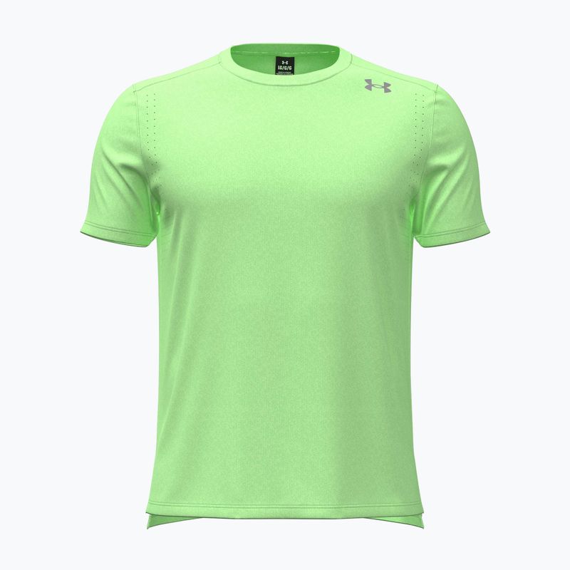 Férfi futó póló Under Armour Velociti Pro lumos lime/white ideális választás aktív férfiak számára, akik a kényelmet és funkcionalitást keresik. Poliamidból és elasztánból készült, a póló kiváló lélegzőképességet és rugalmasságot biztosít, ami kényelmet nyújt az intenzív edzések során. A gyorsan száradó anyag lehetővé teszi, hogy a póló rövid időn belül újra használatra kész legyen.
