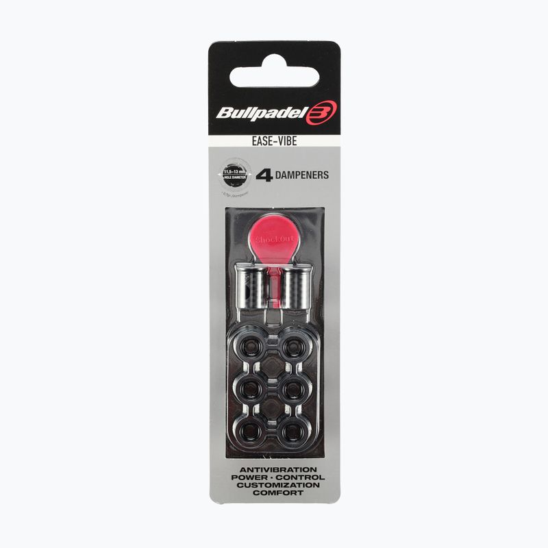 A Bullpadel Ease Vibe 4 db rezgéscsillapító akár 60%-kal csökkenti a rezgéseket a ütközés során, javítja a játék kényelmét és védi a csuklót. Lehetővé teszi a teljesítmény vagy az irányítás beállítását a rakétára való szerelési hely megváltoztatásával.