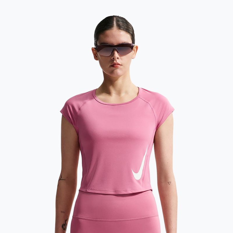 női Nike Tempo Swoosh póló, cap típusú ujjal és Dri-FIT technológiával a szárazságot, kényelmet és a mozgás szabadságát biztosítja. A testhezálló, rövidített szabás és a raglánujjak minimalizálják a súrlódást, lehetővé téve, hogy teljes mértékben a futásra koncentrálhass.