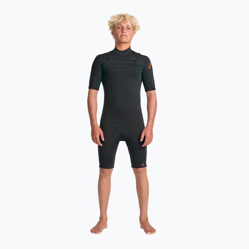 A férfi úszóruha Quiksilver Everyday Sessions 2/2 mm Chest Zip SS Spring egy könnyű, rövidujjú ruha nylonból és elasztánból, amely kényelmet és szabad mozgást biztosít nyári vízi tevékenységek során, ideális úszáshoz és vízi sportokhoz meleg vízben.