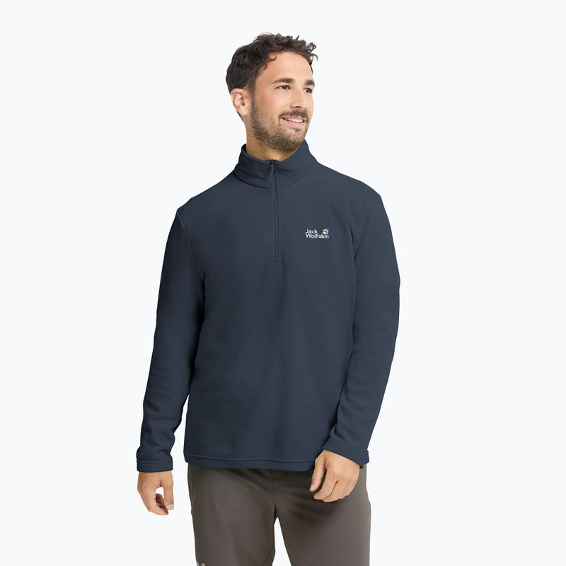 Férfi könnyű polárpulóver Jack Wolfskin Taunus 100 Half Zip ideális szabadtéri tevékenységekhez és hétköznapi használatra. A meleg, lélegző anyag jól szigetel, míg a 1/2 cipzár lehetővé teszi a hőmérséklet gyors beállítását. A funkcionális szabás szabad mozgást és kényelmes viseletet biztosít.