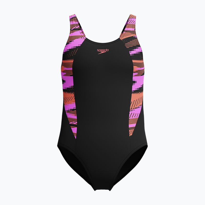 A Speedo HyperBoom Splice Muscleback gyermek úszódressz egy kényelmes, sportos, színes dizájnnal rendelkező modell. Klórálló anyagból készült, jól teljesít a rendszeres edzések során. Rugalmas kialakítása szabadságot biztosít a mozgásban és kényelmet a vízben.